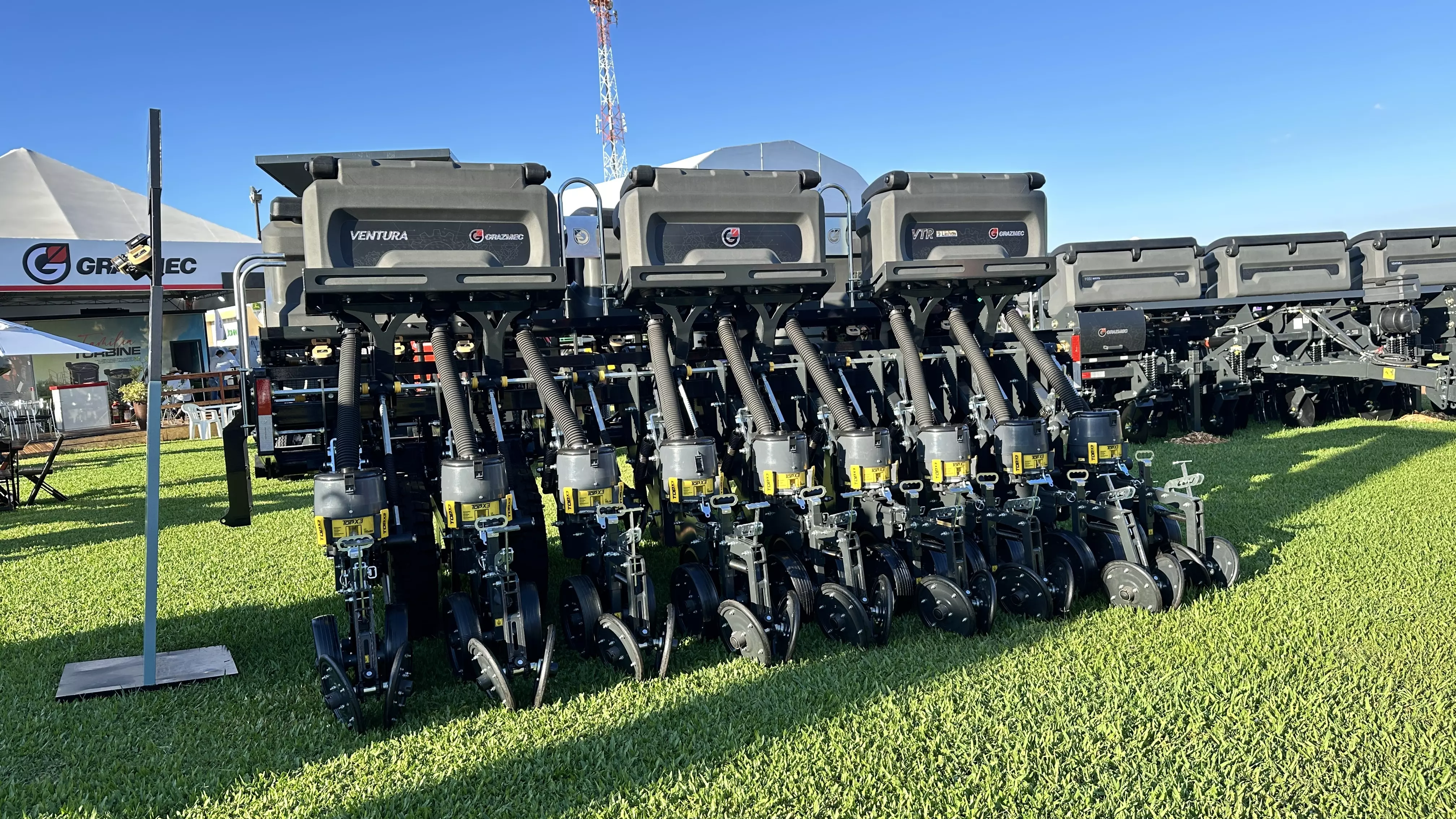 Na área de plantio, levamos nossas consagradas plantadeiras VENTURA, disponíveis nas versões de 5 a 11 linhas, que combinam tecnologia, robustez e excelente distribuição de sementes, entregando uniformidade e produtividade no campo.